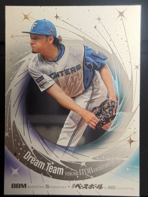 こちらのインサートカード「Dream Team」もデザインが秀逸。出ました、こちらも右投手、日本ハム伊藤大海選手。