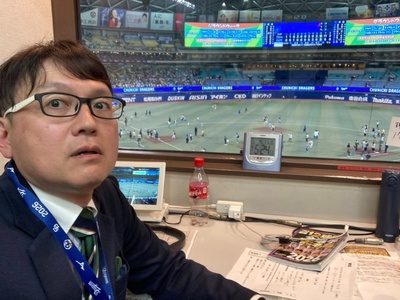 試合後はこの表情。流石に疲れました。新設されたホームランウイング効果をまざまざと見せつけられた格好です。初めて故郷に実況を届け、チームバランスにも配慮するプレッシャーもあったのかもしれません。きょうは同カードでベンチレポート。あさって14日のカープ戦も実況を務めます。初の中2日、初豊橋、初屋外、初ナイター(これまですべてデーゲームでした)、初RCCネットと初ものづくしです。どうかお手柔らかに願います。