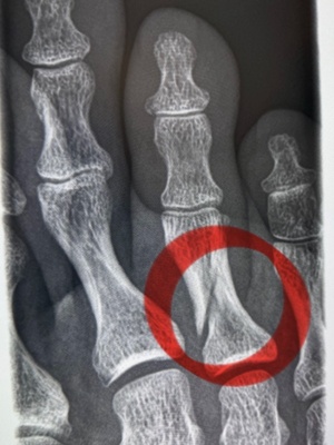わたしの右の第3趾(中趾、中指)、折れていました。