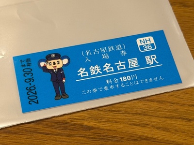 中日ドラゴンズのマスコットキャラクター「ドアラ」をデザインした名鉄の入場券が発売されています。現在は一部の駅名だけですが、11月1日から名鉄ほぼ全ての駅・273の名前が入った入場券が発売されます(※どの駅で買えるかは名鉄のホームページでご確認ください)。