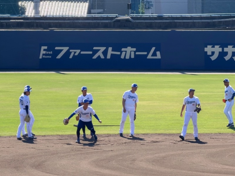 今日はプロ野球ドラフト会議。ナゴヤ球場には記者はほとんどいません。なので、わたしはナゴヤ球場に行ってきました。 投手、野手とも一軍メンバー中心、かなりの人数になっています。