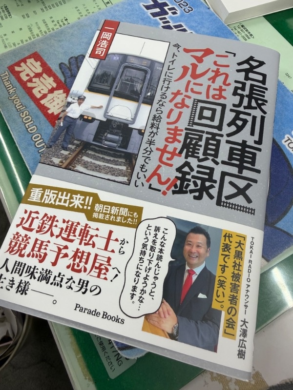 やっとデスクに戻ります。すると本が届いていました。私が帯紙を書かせていただいた『名張列車区回顧録 これはマルになりません!』(一岡浩司著、パレード刊)です。なんと、なんと、奇跡の重版!