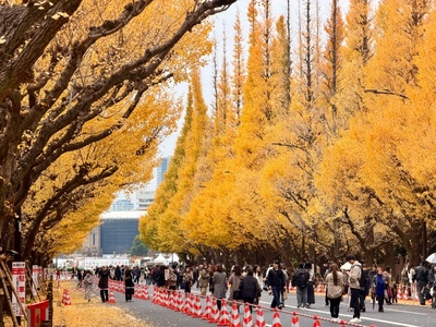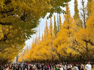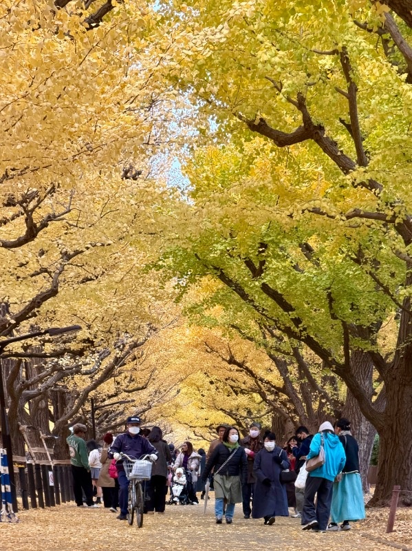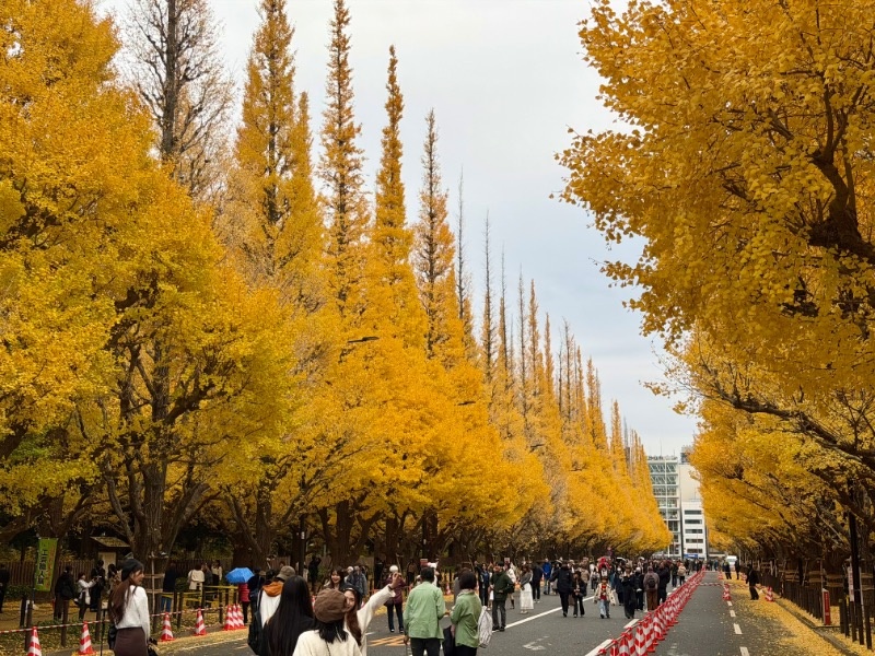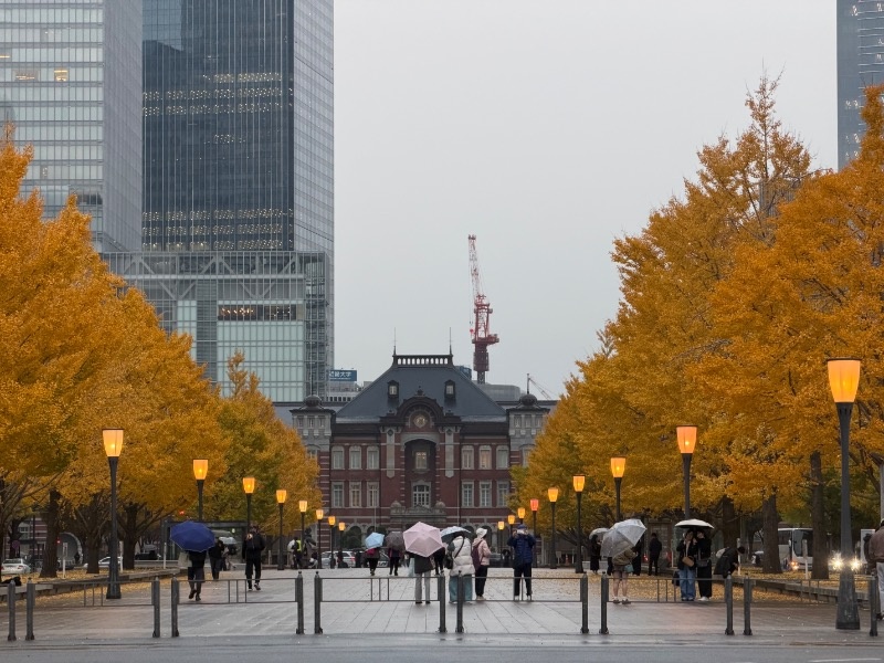 先日、東京に行ったときに少しだけ散策しました。 雨が降っていましたが、色づいたイチョウの鮮やかさを味わうことができました。