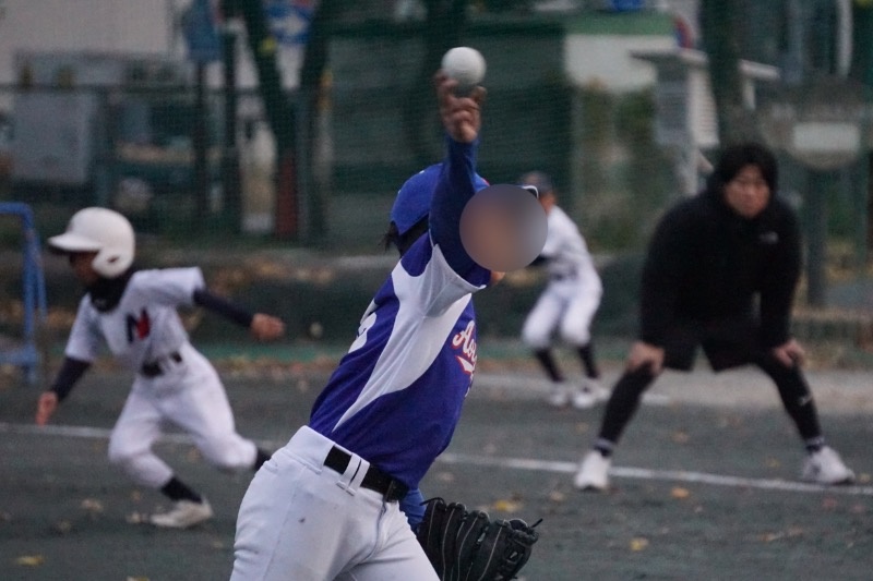 その後、三振でワンアウト。そしてまた四球。「マズいな…」と心配しましたが、そこからショートフライ(ナイスプレーに助けられました)、ピッチャーフライ。1イニングを0点に抑えました。ホッとしました。
