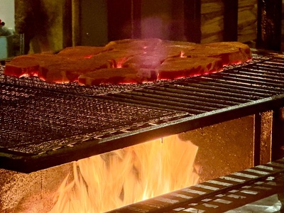 そして、本格的な薪て肉が焼かれていきます。私と妻はミディアムレア、我が子はミディアムで。