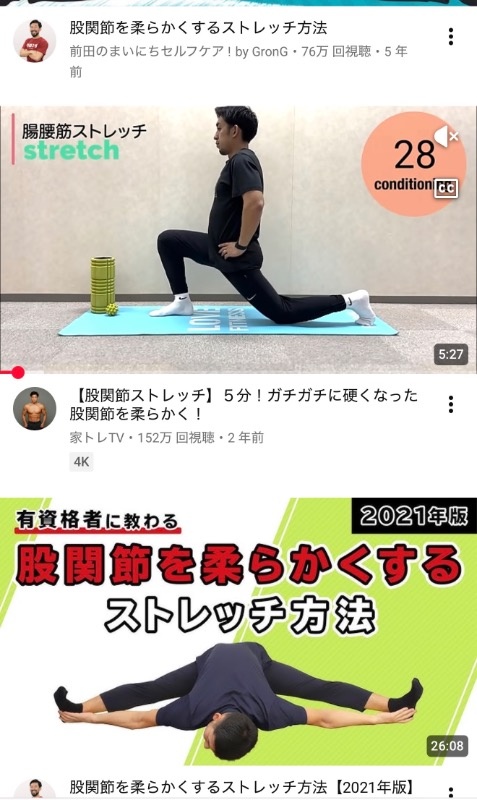 YouTube上にはいくつもストレッチの動画があります。その中で合いそうなものを選んで、実践。そして昨夜、ようやく前屈で床に手がつくようになりました。何年ぶりなんだろう(笑い)。