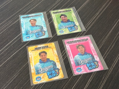 カード収集をいう私の趣味が知られたおかげで、ドラゴンズのキャンプ地から帰ってきたかたから、グッズ購入のノベルティであるカードをいただきました。うれしい。