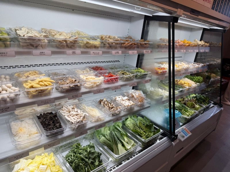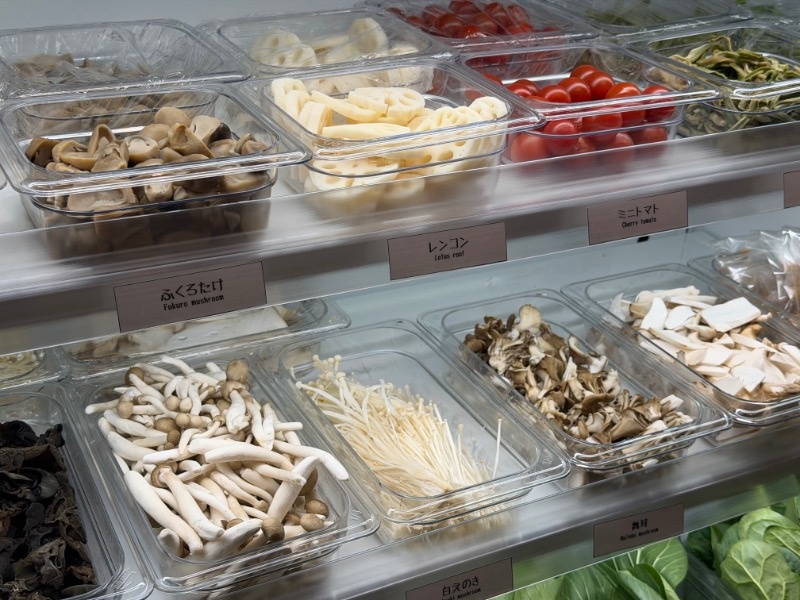 ベースはこだわりスープ+春雨で620円。ここにトッピングケースにずらりと並ぶ食材を選びます。重さで量り売り。