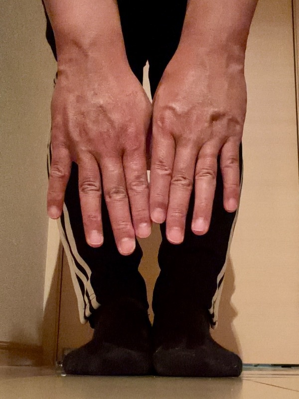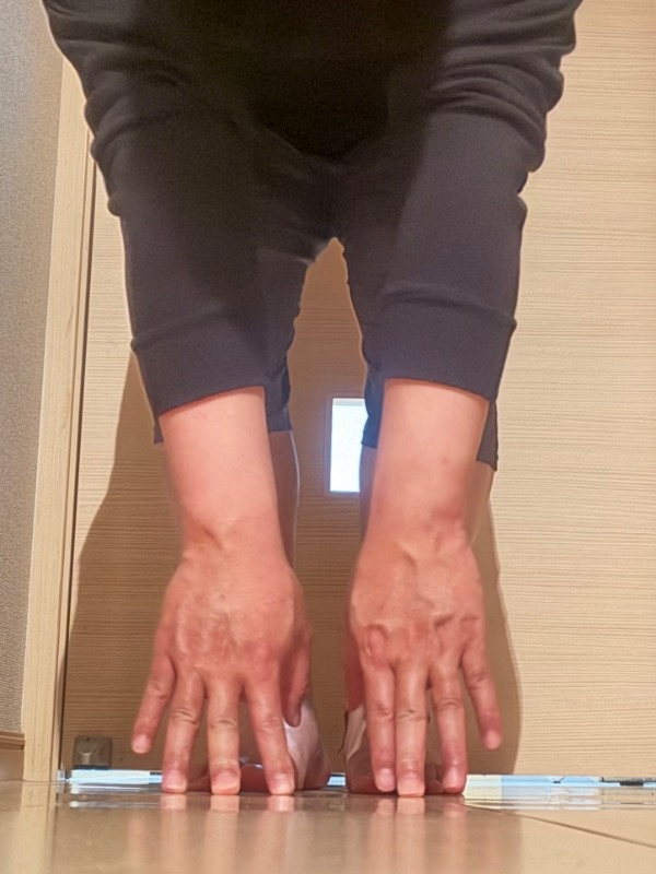元々、体が硬いのです。毎日ストレッチをしていても、入浴前の何もしていない状態だとこの写真のようにカチカチです。