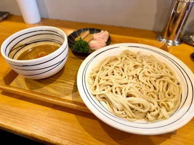 つけそば(1,200円)。 私はあまりつけ麺を食べることはありません。麺はツヤツヤです。さあ、お味は?