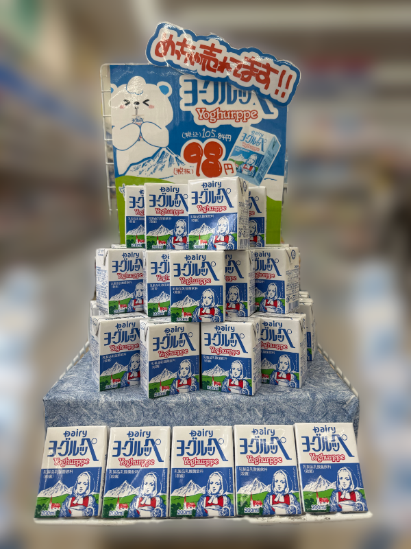高校を卒業してから、一度も見たことさえなかったはず。まさかここで買えるとは。あまりの嬉しさに、ネットでいほいろ調べました。宮崎県の南日本酪農共同が1985年から販売しているヨーグルッペ。今思うと、なぜ岐阜県の公立高校の自販機で販売されていたのでしょう? そしていま「めっちゃ売れてます!!」というポップと共に、入り口すぐに鎮座しているとは。不思議な再会です。