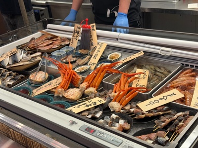 ここで楽しめるのは、やっぱり市場ならではの海鮮。鮮度の良さは言うまでもなく、豪快に焼いて味わうスタイルは、つい時間を忘れてしまいます。