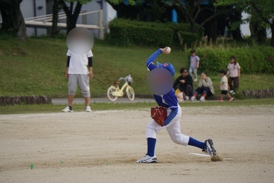 続いてCチーム(4年生以下)の練習試合。とはいえ、相手チームは5年生も多数、出場していました。我が子は4番ピッチャー。