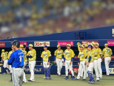 そして満員のスタンドでは、我が子も少年野球チームの仲間と観戦していました。勝ってほしかったなぁ。