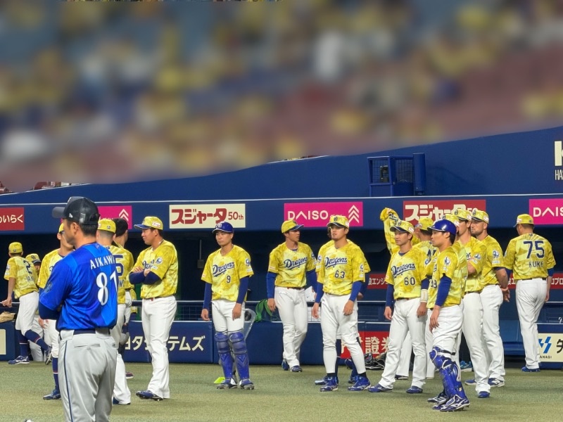 今日は今季2度目の実況担当日。そして今日のDeNA戦は「昇竜デー」。豊臣秀吉をイメージした「金色」のユニホームを着用し、来場者にも配られました。