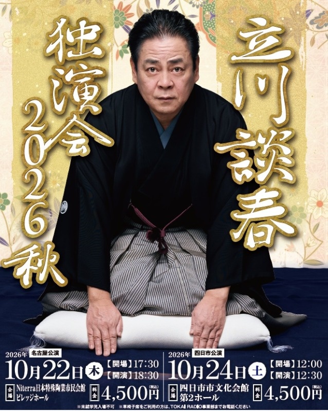 【立川談春 独演会 2026秋】10/22(木) Niterra日本特殊陶業市民会館ビレッジホール コンサート