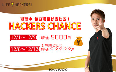 そして、番組が指定する曲を書いて応募すると現金が当たる「HACKERS CHANCE」を毎日開催。