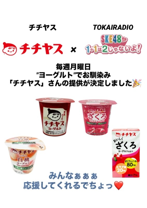 番組を応援してくださっている”ヨーグルト”でお馴染み!チチヤスさん!!!