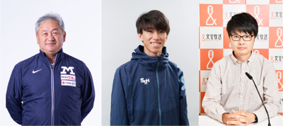 左から)大志田秀次駅伝監督、近藤幸太郎選手、柏原竜二